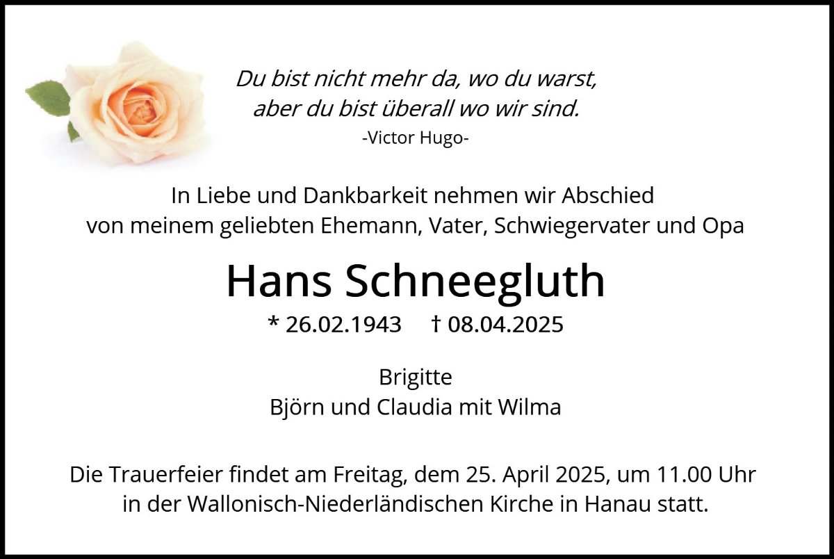 Hans Schneegluthgestorben am 8. April 2025